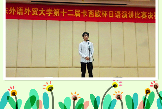 取得这次的成绩当然离不开我的老师和同学。学院为我提供了一次展现自我的宝贵机会,班主任老师桂燕玉和外教老师桑原给了我细心又专业的指导。还有,我的同学们也给了我很多的建议以及支持,真心感谢大家。自助者天助之,亲爱的同学们,请行动起来,你们也可以收获成功的喜悦。