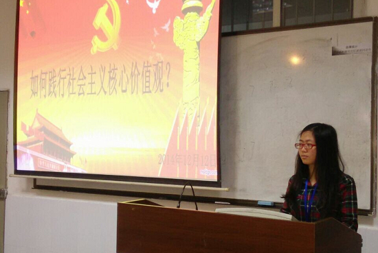 此次党校讨论的主题是“如何践行社会主义核心价值观”,李亚男首先阐述了社会主义核心价值观的定义,并以“大学生如何践行社会主义核心价值观”进行了本次讨论的引导。