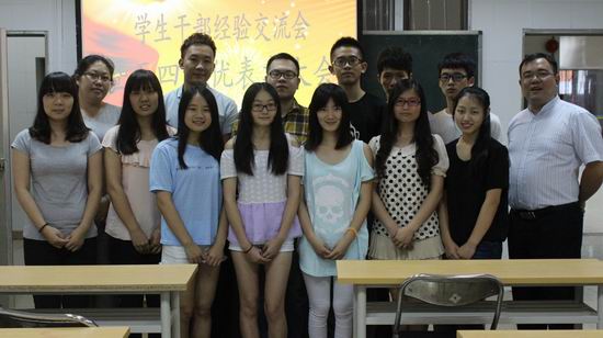 本网讯 为了进一步加强国际商务系新一届团学干部的业务能力,提高系团学的凝聚力,2014年5月22日下午,国际商务系在校本部文萃苑111室召开了学生干部经验交流会。出席本次会议的有系副主任彭陟老师,辅导员李秋颖老师和李亚男老师,第十四届院团委学生会主席马晋伯,第十一届系团总支学生会主席傅乐。