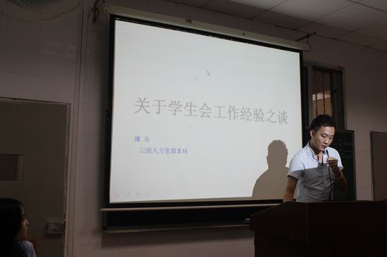 会议首先由彭陟对国际商务系团委学生会本学期以来的工作表现进行了总结,并就团学下一阶段的工作提出几点意见。彭陟强调团学是一个大家庭,是一个团队,团学的工作需要团学各个部门之间的通力合作,互帮互助。随后,上届院团委主席马晋伯给大家介绍了自己的经验。他指出加入团学不仅仅是家长的期望,还是大学生自身发展的需要。每个人的心中都有属于自己的舞台,心有多大,舞台就有多大。一个团队分工要明确,要有责任心,做事要主动,这不仅是对我们自己负责也是对同学们负责。接着由上届系团学主席傅乐为大家分享他的心得体会,他告诉我们一个团队的合作和凝聚力的重要性,并通过实际案例来告诉我们遇到相同的事情的时候要尽量做的更好。做学生干部是一个很好的锻炼机会,这是一个不断积淀自己、完善自己的过程,在这个过程中不要问自己的利益,当你认认真真、踏踏实实完成好自己该完成的任务后,你总是会有所收获的。灯光照不到的地方,就是我们的舞台,我们一直在路上。