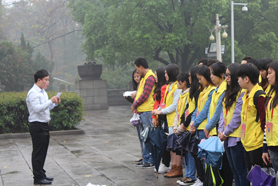 本网讯 为缅怀革命烈士,弘扬爱国主义精神,促进我校的精神文明建设,2013年4月2日,在辅导员李秋颖老师,张旭林老师带领下,国际商务系第二党支部和国际商务系团总支学生会全体成员来到广州烈士陵园组织了以“缅怀革命先烈精神,弘扬爱国主义情怀”为主题的扫墓纪念活动。