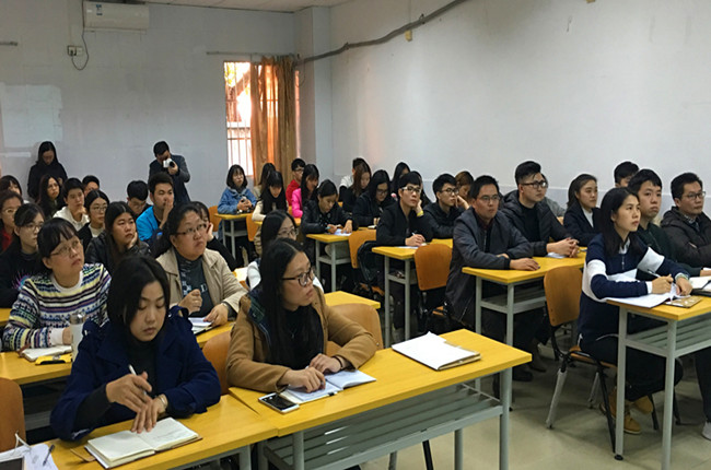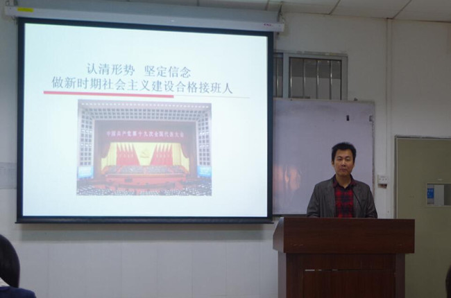 本网讯 为了使广大学生党员深入学习掌握十九大精神,做有理想、有本领、有担当的新一代青年,11月23日,学院党委副书记曾健文在北校区文萃苑108课室,为我院三个学生党支部的学生党员和重点发展对象上“认清形势、坚定信念,做新时期社会主义建设合格接班人”的专题党课。本次党课由国商系支部书记李清伟主持,参加人员为全体学生学生党员和党支部党员以及重点发展对象共40余人。