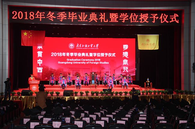 12月27日下午,广东外语外贸大学在北校区云山会堂隆重举行2018年冬季学位授予仪式。我院244名学子亲临现场,上台接受校长的拨穗正冠,领取学位证书。在参加本次学位授予中,吴海兰、卢侣青两位学子身份较为特殊,他们是首批“广外-平安”校企合作项目的学员,两位学子求学之路,既体现了“广外—平安”校企合作办学项目的优势,同时也鼓舞人心,更为后面的学子树立榜样作用。