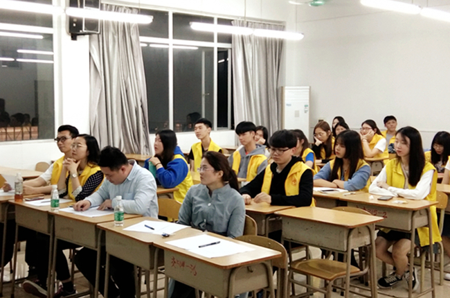 本网讯 3月27日19:00,国际商务系在夏茅校区第三教学楼411教室举行了第四届“纷”享会决赛。团总支学生会指导老师张旭林,辅导员老师甘妙,及团总支学生会全体成员出席本次“纷”享会。大会由秘书部部长谢琴琴主持。