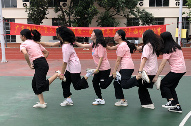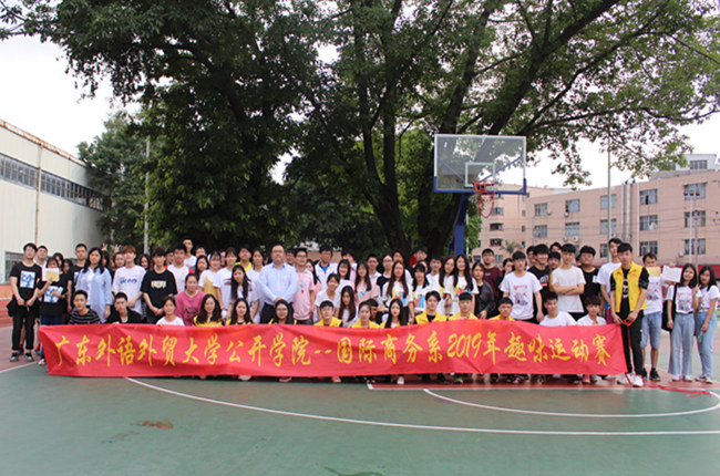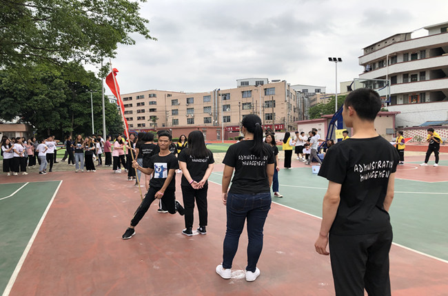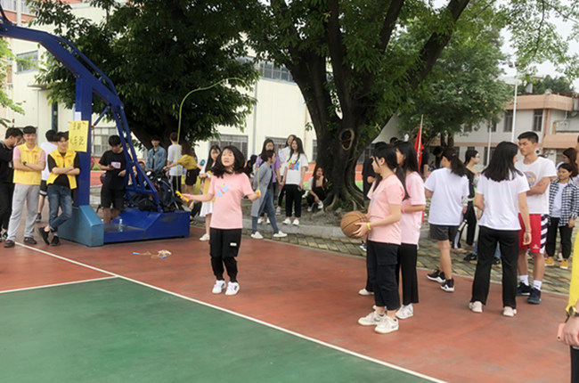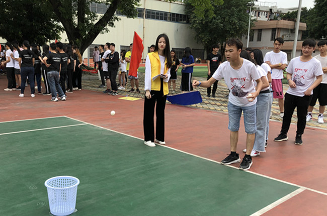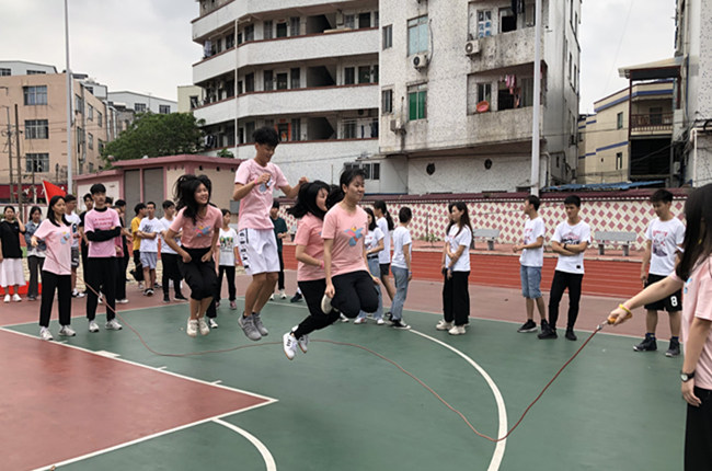 本网讯 为了增强学生班级凝聚力,丰富学生课余生活,同时加强学生身体素质锻炼,展现学生的运动积极性,5月9日下午,国际商务系在白云湖校区举办“青春飞扬,激情赛场”学生趣味运动会。本次运动会设有集体跳大绳、单腿火车跑、运球跳绳接力赛、投球进篮、红旗飘飘、拔河共6个比赛项目,100余名2018级学生分5支队伍参赛。