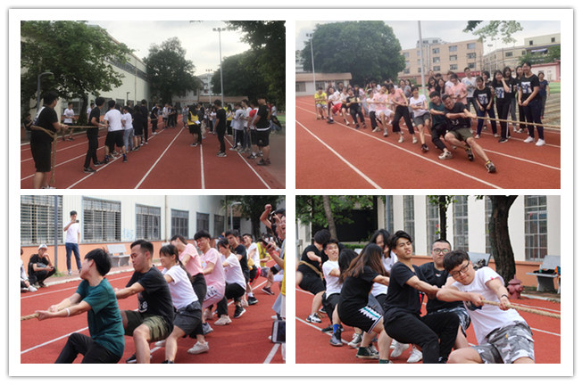 比赛一开始,各参赛选手积极参赛,你追我赶,观众助威呐喊声一浪接着一浪,集体跳大绳的默契配合,单腿火车跑的耐力,运球跳绳接力的激烈比拼,投球进篮的定力与技巧,红旗飘飘的奔跑速度,拔河比赛的团结,赛场上的激情瞬间被点燃。最终由商务秘书班与国际旅游管理班组成的联合队伍夺得本次趣味运动会的冠军。