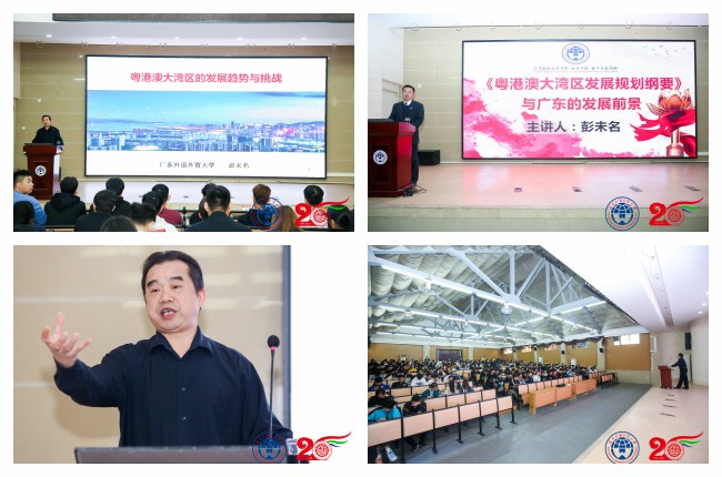 本网讯 12月7日,在高等继续教育创新发展论坛暨广东外语外贸大学公开学院成立20周年系列活动举办之际,学院“院长论坛”首场讲座在白云湖学术报告厅隆重开讲,邀请广东外语外贸大学社会与公共管理学院院长彭未名教授为校友和学生主讲“《粤港澳大湾区发展规划纲要》与广东的发展前景”。讲座由学院党委书记邵兵主持,来自各地的校友及在校学生近300人聆听了讲座。
