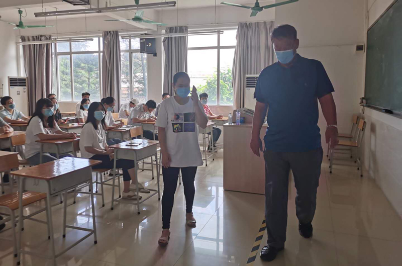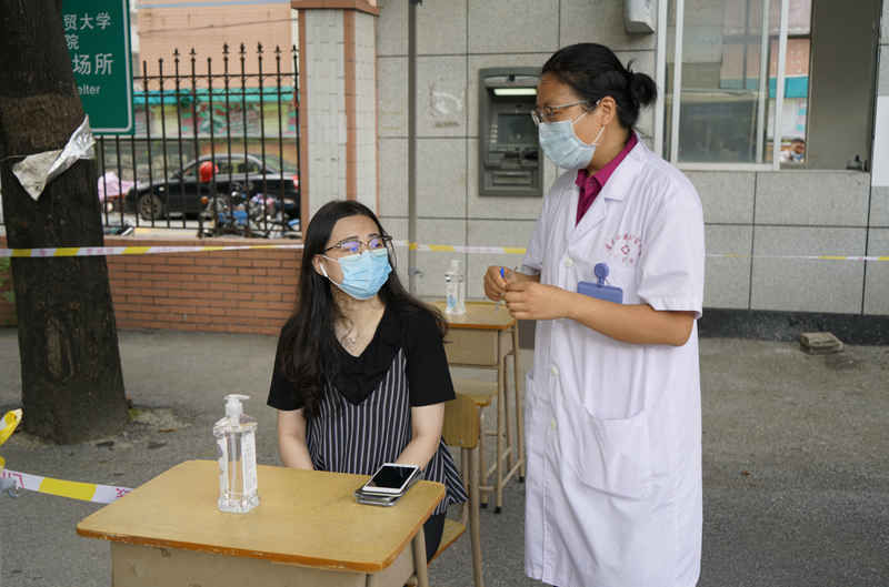 工作人员引导体温异常学生去学院医务室