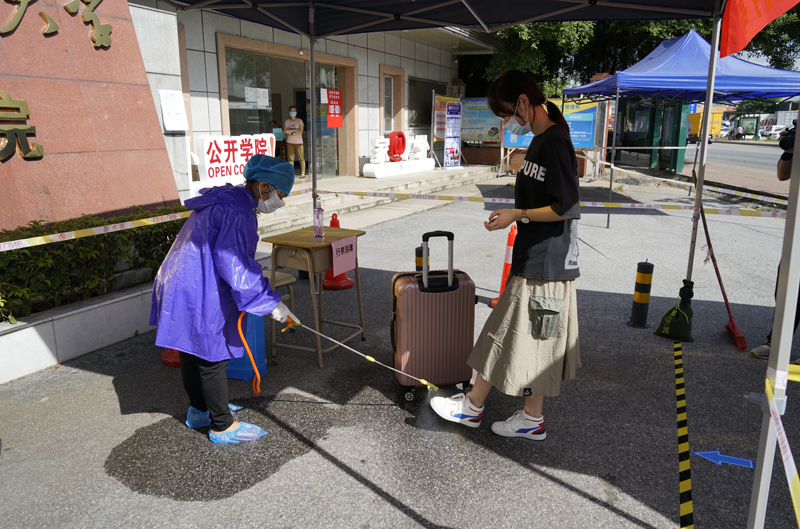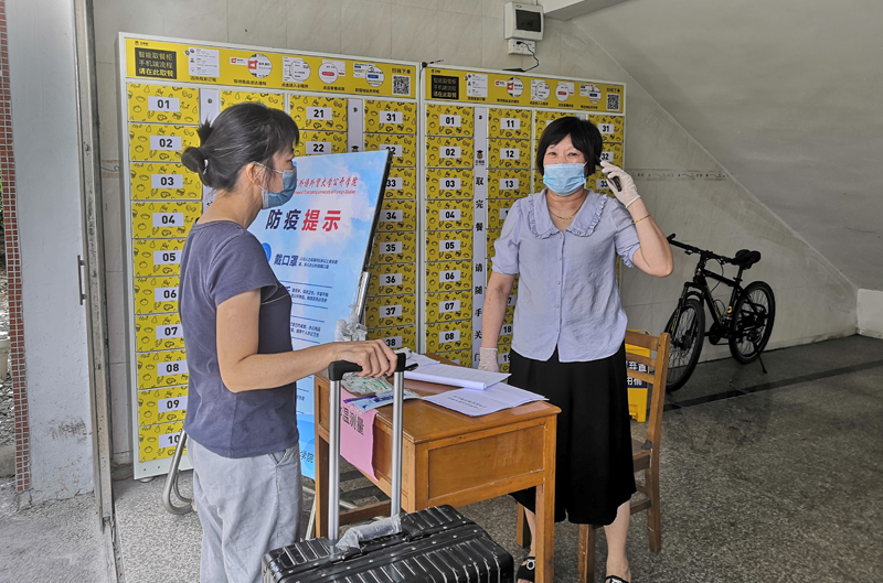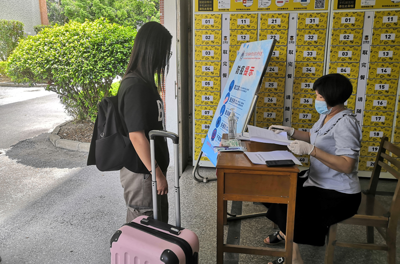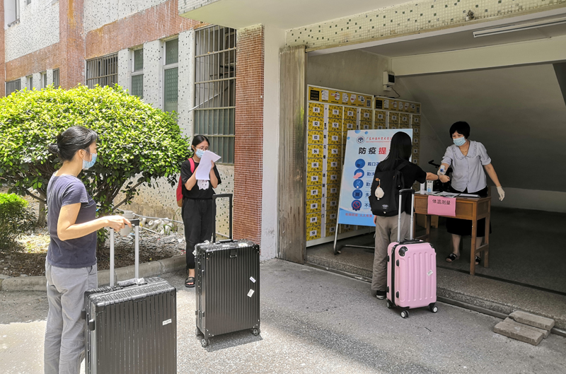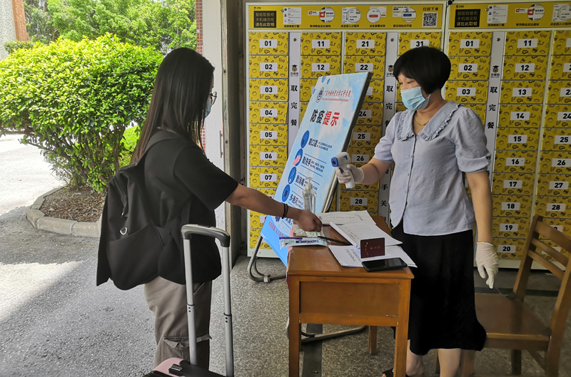返回宿舍学生排队等候信息核查和体温检测