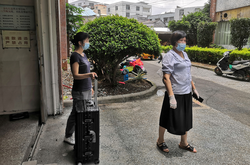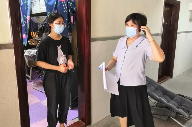 工作人员登记进入宿舍的学生信息