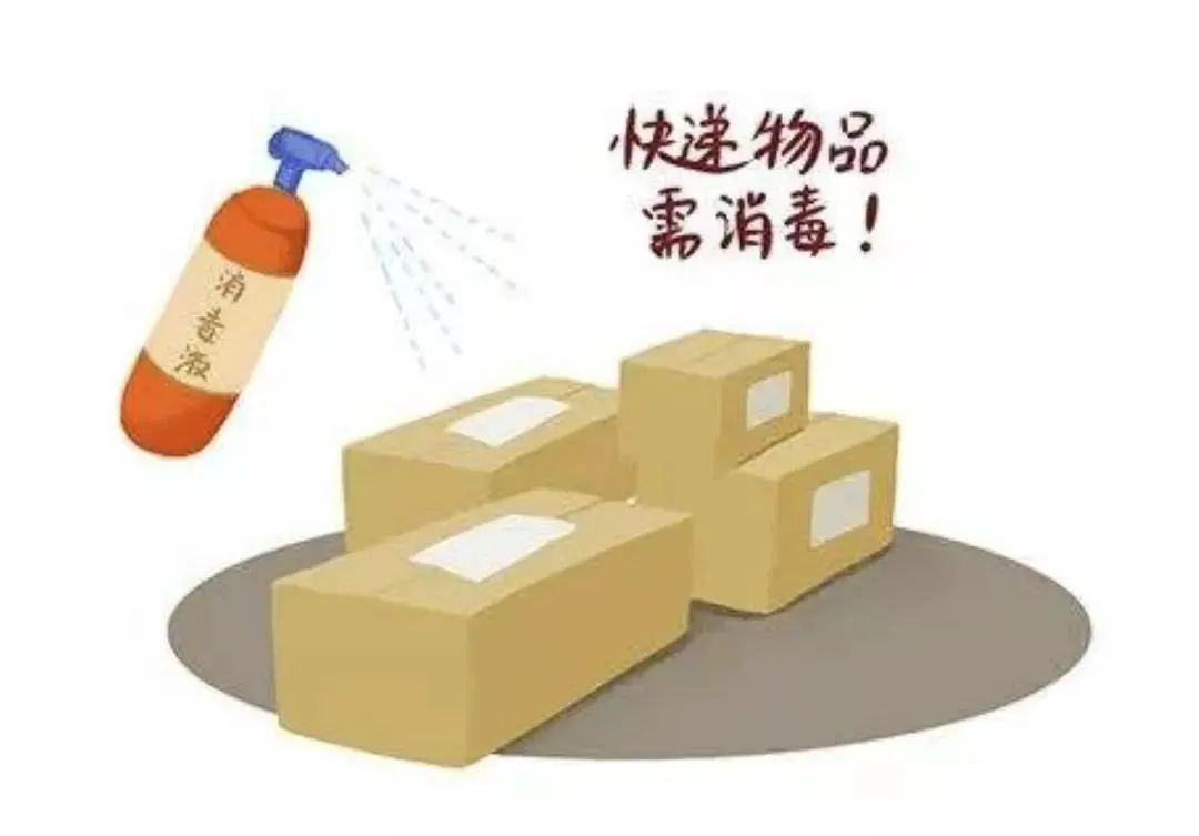 3. 对包裹内外表面可用75%的酒精或500mg/L 的含氯消毒剂含氯消毒液进行擦拭消毒,尤其是拿回家的货物。
