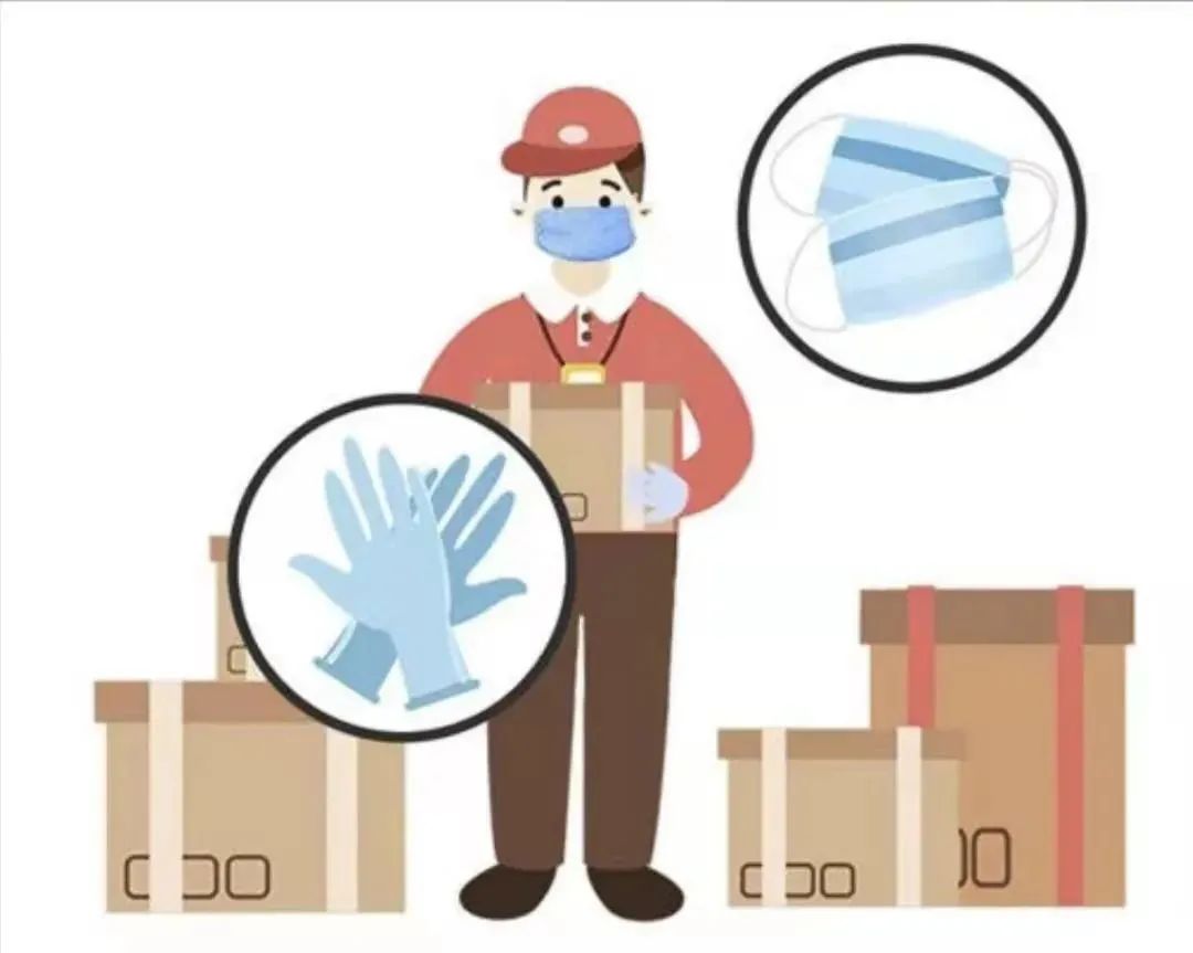 5. 处理完快递后及时摘下手套,用流动水清洗双手,更换口罩,全程避免用不清洁的手触碰口、眼、鼻。