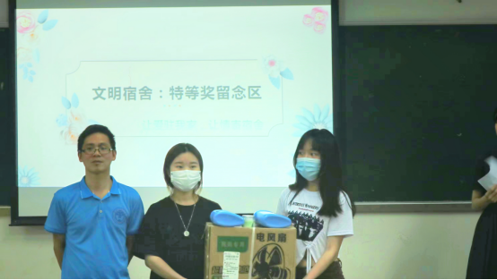 大会宣读了《关于表彰大学城分部2022年上半年文明宿舍的决定》。1栋301获得特等奖;16栋306、15栋303、5栋303获得一等奖;6栋308等12间宿舍获得二等奖;9栋202等15间宿舍获得三等奖。