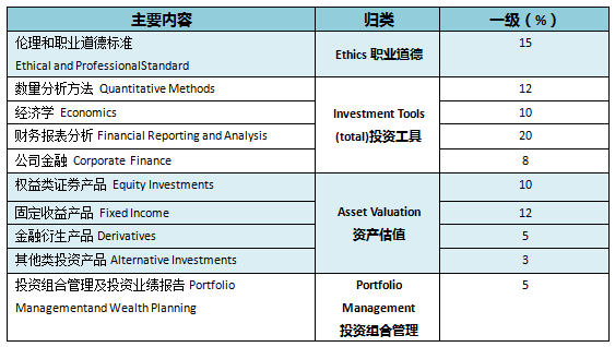 CFA是"特许金融分析师"(Chartered Financial Analyst)的简称, 被国际誉为进入“华尔街的入场券”。不限制专业,零金融基础即可开始学习。特别注重培养学员的分析能力和在复杂条件下的决策、判断能力,提升其整体运用及分析能力并拓宽商务战略思维。CFA一级阶段具体,共10门课程: