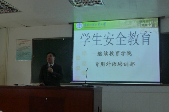 本网讯 为加强学生的安全意识,提高学生安全防范技能,增强自我防范能力,3月8日下午,专用外语培训部在校本部三教220教室开展“学生安全教育”主题讲座。本次讲座由副主任李永主讲。