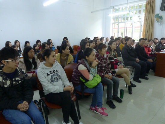 本网讯 为丰富学生的课余文化生活,活跃校园气氛,专用外语培训部于12月11日在本部三教114课室举行了第三届模拟营销大赛。大赛的评委由AC音像灯光有限公司CEO康利平女士和专职教师赵珂、林伊杰、汪琳、刘晓琴担任。专用外语培训部全体老师及商务英语类的学生参加了活动。