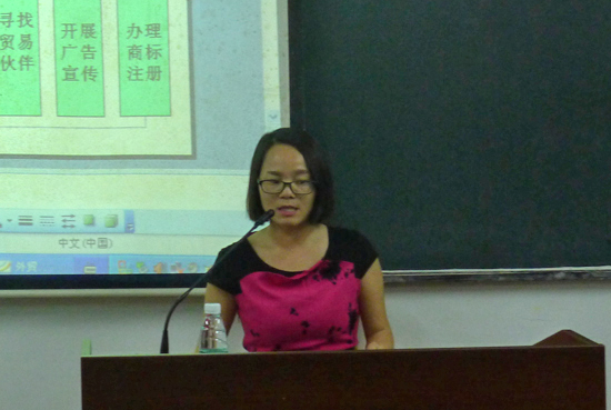 本网讯 2014年10月23日下午2:30,专用外语培训部在校本部第三教学楼101室,举办 “外贸实务”的专题讲座。专用外语培训部商务英语类的全体学生参加了讲座。本次讲座邀请了AC音像灯光有限公司CEO康利平女士做主讲。讲座由副主任李永主持。