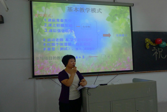 桂燕玉首先代表广外继续教育学院向全体学员致欢送词,桂燕玉向学员们具体总结了本次企业培训工作项目的培养目标、培养模式以及日韩语项目部为此次培训作出的精心准备和辛勤劳动,并就本次培训的学员成绩进行了深入的剖析,桂燕玉提到,学员们通过四个月的培训基本能达到日语三级水平90分及BJT300分以上,其中有两位学员日语能力三级测试还达到了150分以上的高分,希望他们能在今后的工作中发挥所学,进一步提高日语水平。