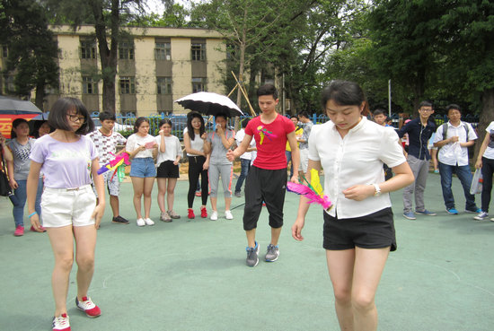 本网讯 激情五月,放飞青春。为了发扬团队精神,增强凝聚力,提高学员团体合作和坚韧不拔的精神,通用英语培训部于5月14日下午在北校区大操场举行踢毽子、跳绳比赛。通用英语培训部副主任许佳华出席了本次活动。