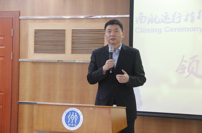 本网讯 12月1日下午,第八期南航运指系统英语脱产培训班结业典礼在MBA中心丝纺讲堂举行。继续教育学院院长何勇斌、党委书记苏冬燕、副院长任跃忠,继续教育中心主任吴敦龙,及南航股份有限公司运行指挥中心总经理丁安宁、签派部经理崔麦喜、运行调度部副经理刘醒龙、航线管理部经理张艺、群工处主任周天鸣、技术管理部副经理徐明明及全体学员出席了此次结业典礼。