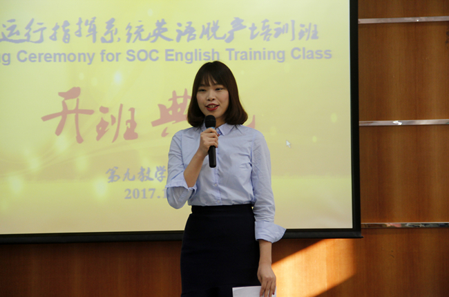 开班典礼上,何勇斌用中英双语致辞,他首先对第九期培训班学员的到来表示欢迎。他说,在南航的信任下,广外与南航之间的合作不仅得到进一步延续,还得到更广泛的推广。广外会重视每一期的培训,选派经验丰富、充满耐心而不乏激情的培训教师授课,同时做好各项服务工作,他希望学员们能在45天的培训中学有所成,并将所学知识应用到未来的工作中。