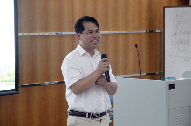 胡海娟在开班仪式上用中英双语致辞。她首先对参加本次培训的禅城区英语学科带头老师们的到来表示欢迎,并感谢佛山市禅城教育发展中心对广外的信任。她向学员们介绍了广外及学院的情况——广外是一所国际化特色鲜明的大学,学院已为100多家单位提供专业培训拓展,与南航、中海油、广汽丰田和地税系统等企事业单位长期合作,学院专业的师资、严格的管理和优质的服务得到培训单位一致好评。之前和禅城教育发展中心的合作,学院积累了宝贵的经验,相信通过专业的团队服务,本次培训必会取得圆满成功。