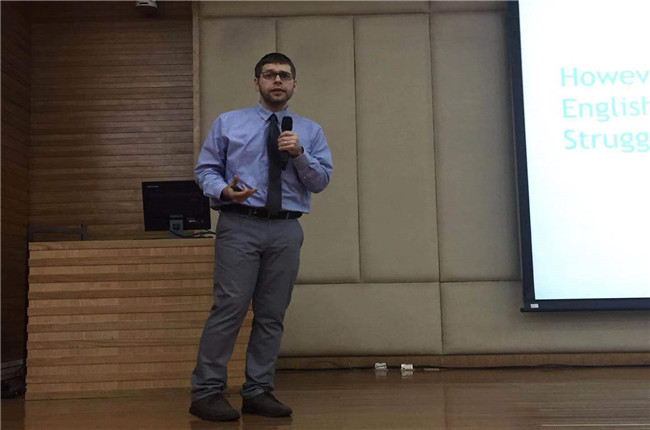 本网讯 3月14日晚上7:00,我院继续教育中心在北校区图书馆多功能报告厅举办了一场名为“日常实用英语习得”的讲座,此次讲座邀请了资深外教Joshua Isaacs主讲。