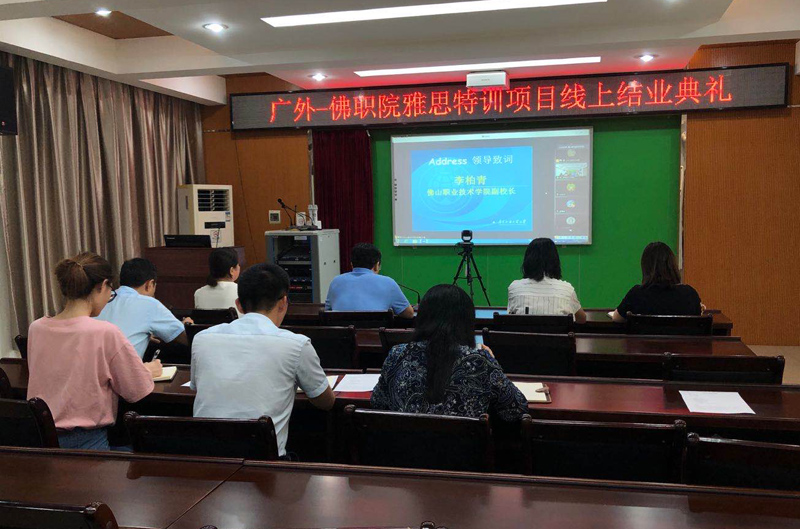 中法国际雅思特训班是高等继续教育学院和佛山职业技术学院通过多次协商而敲定的培训项目。参加该项目的学员均为雅思基础薄弱,而又面临出国学习任务的学生。由于该项目时间紧迫,任务繁重,对于学员和任课教师可谓困难重重。由高等继续教育学院组成的团队迎难而上、精心准备,最终以高质量的教学、管理得到佛职院领导及学员的高度认可,使项目获得圆满成功。佛山职业技术学院表示将进一步加强与广外高等继续教育学院的合作。