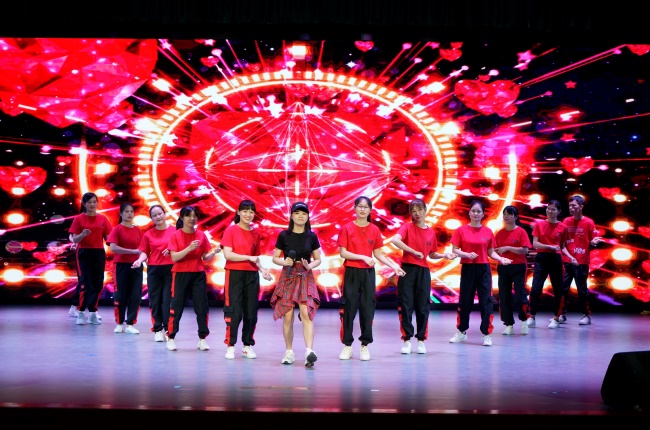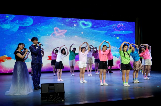 结业典礼的“汇报演出”环节,学员们身着彩色服饰上场,有舞蹈、独唱、古筝、书法、唱跳、朗诵、手语表演和大合唱等多种形式,冲击视觉,活力十足,精彩纷呈。最后压轴上场的是一期班学员的大合唱《我和我的祖国》,深情地演唱表达了对祖国的热爱,引来学员们阵阵掌声,演出达到高潮。