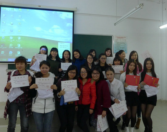 本网讯 为丰富学生的课余文化生活,活跃校园气氛,专用外语培训部于12月11日在本部三教114课室举行了第三届模拟营销大赛。大赛的评委由AC音像灯光有限公司CEO康利平女士和专职教师赵珂、林伊杰、汪琳、刘晓琴担任。专用外语培训部全体老师及商务英语类的学生参加了活动。
