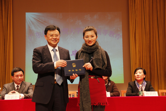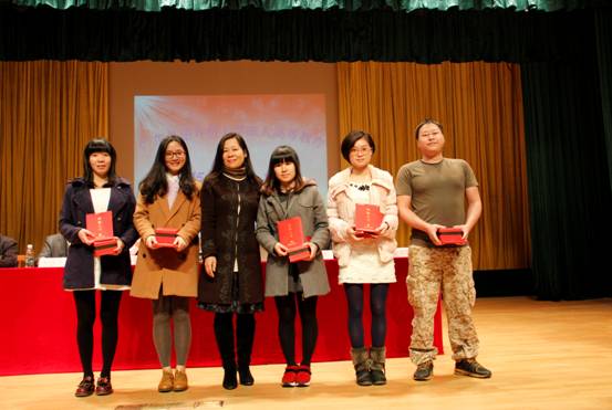 随后,典礼进入颁奖环节。任跃忠宣读学院《关于表彰成人高等教育优秀学生及优秀毕业生的决定》。根据《广东外语外贸大学成人高等教育年度优秀学生和优秀毕业生评选办法》,经有关方面评比,本届毕业生中共有126名学生获得“2014年度优秀学生”荣誉称号, 43名学生获得“2015届优秀毕业生”荣誉称号。苏冬燕为获奖的毕业生颁发荣誉证书及奖品,并一起合影留念。