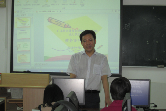 本网讯 4月2日,我校2015年度成人高等教育业务培训会开幕式在校本部三教207会议室举行。成教办全体工作人员以及来自校本部、番禺、东风东、惠州、深圳、东莞、佛山、珠海、汕头、花都、肇庆等10多个教学点的管理人员共40人参加了本次培训会。培训会开幕式由成教办主任张开荣主持。