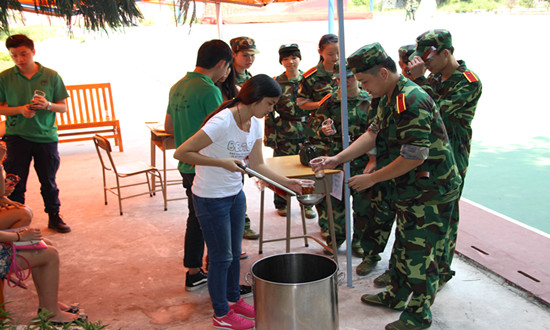 虽然现在天气已经进入秋季,可九月的骄阳丝毫不输盛夏。烈日下,同学们都汗如雨下。为了给同学们提供全面、周到的服务,在商英系领导和团总支的协商下,商英系于9月22日在篮球场大本营开设了“商英团学服务站”,每天安排团学人员轮流值班,目的是希望给予新生们帮助,在服务站提供休息的地方,让身体不适的同学可以暂时得到照顾。服务站还得到了第一饭堂和第二饭堂的支持,商英系团学外联部联系了第二饭堂免费提供热水和袋装凉茶,学院后勤办联系第一饭堂提供桶装凉茶,让新生们在烈日下艰苦训练的同时得到细心的关怀,有利于让他们尽快对学院建立一个良好的归属感。