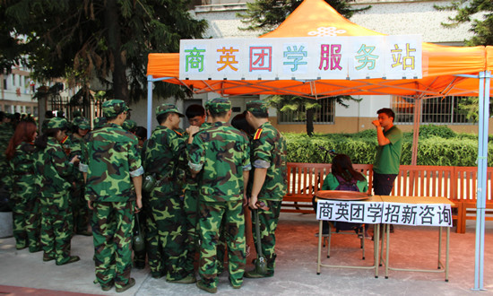团学工作人员认真为军训学生服务