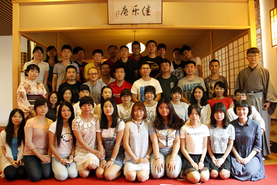 本网讯 5月28日下午,日语系组织丰田班、D03和部分日语自考生共约50人,在由日本驻广州总领事馆出资建成的茶道室“佳乐庵”,参观日本茶道三个“千家”中最大的派系之一日本里千家茶道表演,切身体验日本茶道文化。