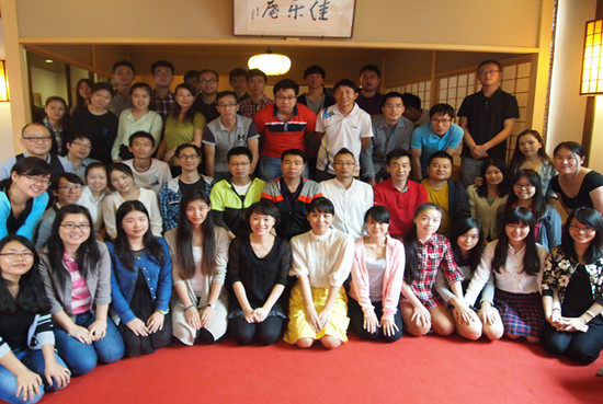 随后学生们观看了茶道表演。茶道核心——“和•敬•清•寂”作为日本400多年的茶人的行为准则,反映着日本独特的文化内涵。“和”即调和之义,人与人、人与自然、乃至茶道具及其使用方法这一切都要达到和谐。“敬”即尊敬之义。尊敬是对于所有的事物的,它是来自于对那些事物的存在的一种感谢之情。“清”即纯粹之义,不仅是指实际的清洁,还包括净化心灵及发自净化了的心灵的言行。“寂”即和平的心境。观看表演的同时,杜凡老师解释说, 饮茶者应先双手接过茶碗,轻轻转上三圈,使碗上的花纹图案对着送茶者,然后将茶碗举高至额头前,以示感谢,再慢慢品尝。据了解,茶室壁龛上挂着的“松寿千年翠”字幅喻示了日本茶道精神永远流传的美好愿望。