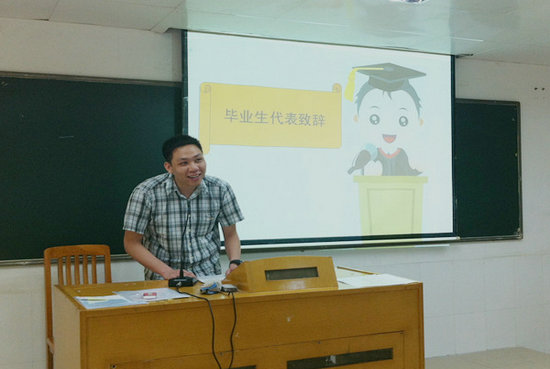 最后,毕业生朱炬昌作为学生代表发表了感言,他与同学和老师依依惜别,对老师和班主任的工作表达了由衷的感谢,并表示将会在日本努力学习,为母校添彩争光。