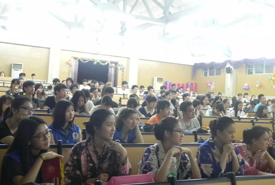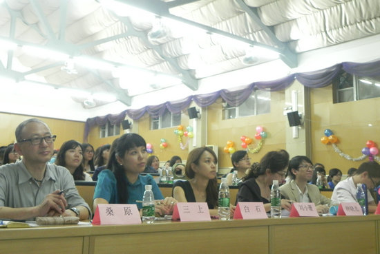 本网讯 2014年5月13日晚,日语系第七届电影配音大赛总决赛在公开学院学术报告厅举行。日语系主任刘小珊、副主任周联兵、教研室主任钟晓光以及日语系全体教职工出席了本次大赛。担任比赛评委的有刘小珊、钟晓光以及外教桑原、三上、白石。