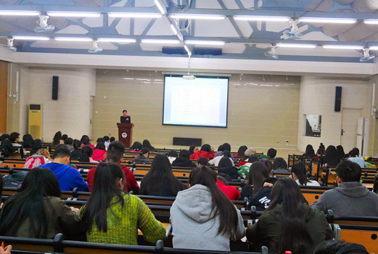 本网讯 11月29日晚7点,西班牙留学推介会在公开学院学术报告厅正式拉开帷幕。学院副院长胡海娟,华南教育培训中心校长马燕及相关老师出席了现场。推介会由外语系主任王蓉主持,150多名感兴趣的学生参加了本次活动。