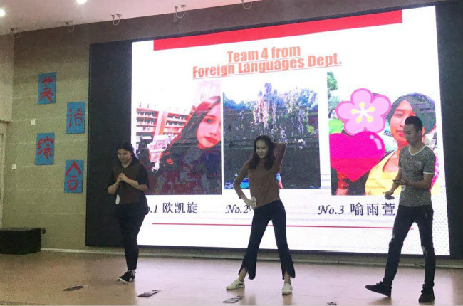 本网讯 为了激发学生英语学习的热情和动力,也为了给学生提供一个在大学中展示自我的舞台,外语系于12月5日晚上7:00,在公开学院学术报告厅举办了外语系第十四届英语综合技能大赛。外语系主任王蓉老师,副主任周联兵老师,教研室主任刘捷捷老师以及学工办主任陈秋林,开放办主任樊春妍,工商系副主任唐丹丹出席了此次大赛。外语系17级和18级学生参加了此次大赛;另外国商系和工商经济系也有选派学生参赛,并且表现优秀。