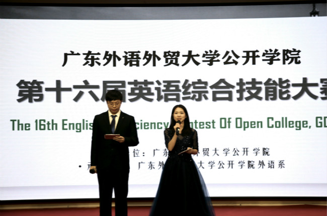 本网讯 12月9日18:30,公开学院第十六届英语综合技能大赛在白云湖校区学术报告厅举办。本次大赛由外语系承办,外语系主任王蓉,大学城分部主任王莉莎,国商系教研室主任黄凌聪,外语系英语教研室主任刘捷捷和预科部教师欧琼担任比赛评委。