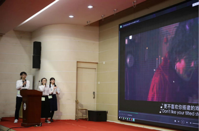 通过初复赛的选拔,共七支队伍成功获得决赛参赛资格,决赛分为团队出场介绍、情景对话、电影配音和交替传译四部分。在团队出场介绍环节中,各队通过各种创新的形式展现了自己流利的英语口语水平。在情景对话环节,大学城分部的伍志涛在情景对话中扮演的父亲让评委及观众都捧腹大笑。电影配音环节中,外语系组何诗萌、曾洁雯和于励灵以音乐剧的形式赢得现场评委以及观众的热烈掌声。交替传译被认为是最具有挑战性的项目,参赛选手们在此环节中争分夺秒,大学城分部的王晓思在本环节脱颖而出,获得了本次比赛的“最佳翻译奖”。