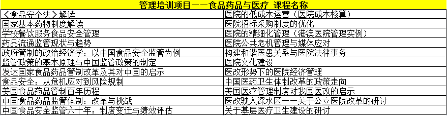 食品药品安全危机是社会风险的基本构成,食品药品监管问题是目前中国政府管制领域的最大挑战,现代食品药品监管体系的构建已经成为国家治理的核心。随着国家医药卫生体制改革的不断深入和人民群众法律意识的提高,各级卫生行政管理机构和医疗卫生机构面临着前所未有的机遇和挑战,医疗纠纷已经成为社会热点问题。本项目通过讲授社会管制的理论知识,分析和借鉴发达国家、地区食品药品监管的改革经验及启示,在食品药品监管政策、理论范式、监管制度及其变迁、危机应对和风险规制、医院经济管理、公立医院及基层医疗卫生机构的改革等方面深入探讨,促使学员更加深刻地认识中国当前食品药品安全监管所面临的挑战和思考未来的发展走向,提升食品药品监管的政策和执行能力,掌握医院经济管理的实用方法,改善医疗质量管理的关系和领会我国医改的政策和要求,保证医改工作落到实处。