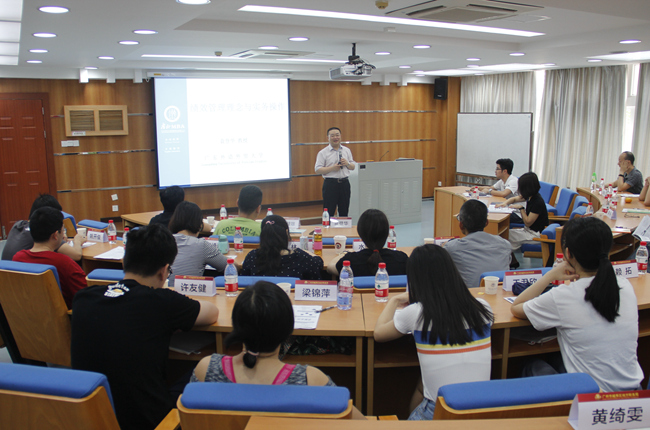 5月16日上午,广外商学院袁登华教授应越秀区地税系统的邀请给学员带来题为《绩效管理理念与实务操作》的讲座。他首先强调了绩效管理的提升目的,并从个体和系统两大影响因素进行了分类解释。随后,他结合社会发展背景指出新形势下需转变观念,主动变绩效考核为绩效管理,并通过员工过程的有效管理产生绩效的累积效应。课上,袁登华还引用《导演说戏》的视频地对绩效管理中“绩效计划—绩效跟进—绩效考核—绩效反馈—再计划”的理论进行了通俗易懂地讲解。最后袁登华就绩效管理的实务操作与在座的各学员进行了热烈的互动交流。