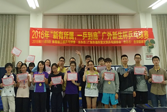 本网讯 11月5日上午9点,广东外语外贸大学2016年“新有所属,一乒到底”广外新生杯乒乓球比赛在南北校乒乓球室同时拉开战幕。我院选派的4名乒乓球选手分别参加了小组赛、个人赛淘汰赛和个人赛八强赛三个阶段的比赛,经过一天的激烈的比赛,我院国际商务系刘佳芸、文羚璀两位同学分别夺得了个人赛女子单打第四名和第五名。