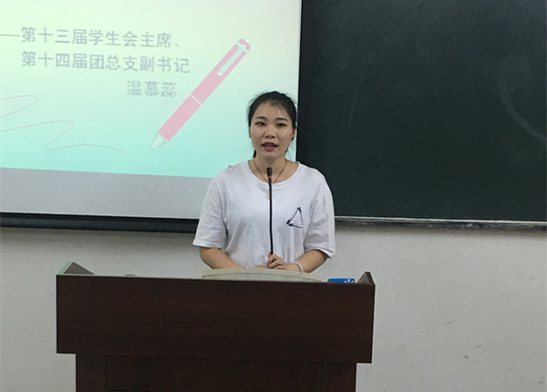 首先,在庄严的国歌后,大会正式开始,先是第十五届主席团讲话,新人新气象,新的主席团提出在新的学期里,要为学院、系里更多的同学做好服务,同时也为团学的同学做好服务,让更多的同学感受到国商系团学这个大家庭的温暖;接着是各部门部长进行部门人员的介绍,通过介绍,让大家之间相互认识,更快的融入到团学这个大家庭中去;接下来是新一届代表刘嘉铭同学、往届代表温慕蕊同学发言,刘嘉铭说到,作为新人,新的血加入团学,希望能给团学带来新的能量,能体现出年轻一代团学人的精神面貌,为国商团学的发展奉献自己的绵薄之力;温慕蕊则说到团学给她带来的很多欢乐和泪水,在团学大家庭里,让她成长了许多,学到了许多课外知识,在为广大师生服务时,让她增强了责任感,是她成长之中一笔难得的财富。