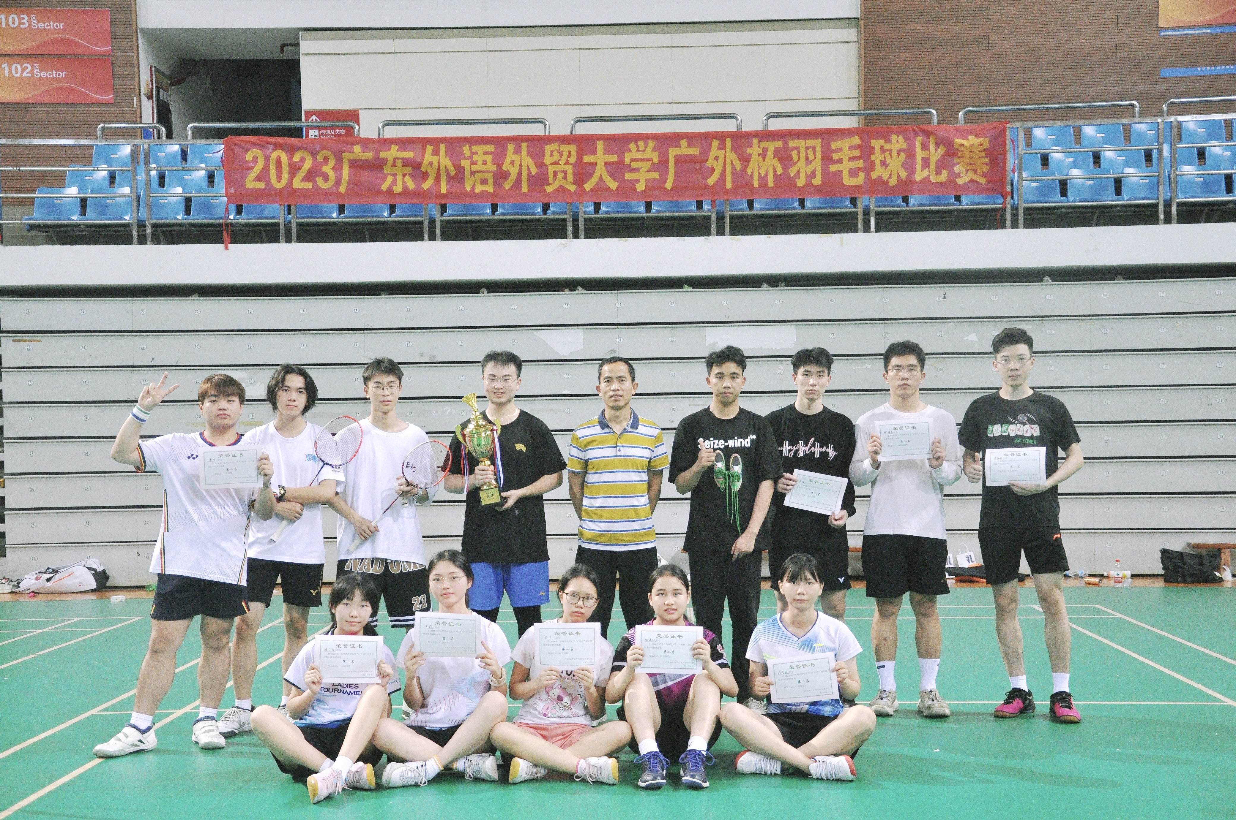 本网讯 4月15日-16日,2023年广东外语外贸大学“广外杯”羽毛球比赛在大学城校区体育馆举行。我院选派14名学生代表参加比赛,在学院学生工作办公室主任陈秋林和国际商务系办公室主任朱名志的带领下取得团体总分第二名的好成绩。