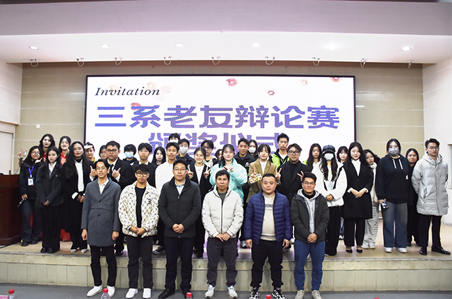 本网讯 为提高学生语言组织表达能力和逻辑思维水平,锻炼团队协作精神,12月6日—20日,由国际商务系、艺术设计与信息管理系、预科部三系联合举办的首届“三系老友辩论赛”举行,总决赛于12月20日晚在白云湖校区学术报告厅举行。学院团委书记赵正苗、学工办主管张旭林及各系学生工作负责人、学生干部、学生代表近150人到场观看比赛。