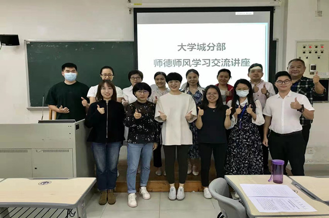 本网讯 2021年10月14日下午2:30,大学城分部在南校区教学楼G212召开本学期师德师风建设系列交流活动,大学城分部全体专职教师及部分兼职教师代表参加,会议由大学城分部主任王莉莎主持。