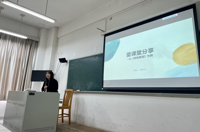 活动第三项——青年教师刘子竹向大家进行课堂教学的分享。她根据学生学习的现状以及《高级英语》课程教学的需要,把“雷课堂”和“云班课”两个软件融入到课堂,利用APP对学生的出勤、测验、作业进行及时的管理及反馈,有效的提高了课堂教学质量和效率。时代在不断地进步,教师也必须坚持学习、丰富自身的知识储备,针对不同时代教学对象的习惯调整自己的教学模式及状态,并在不断地学习中塑造自己的新形象,致力于成为知识储备丰富、教学能力强并富有创新意识的教师。